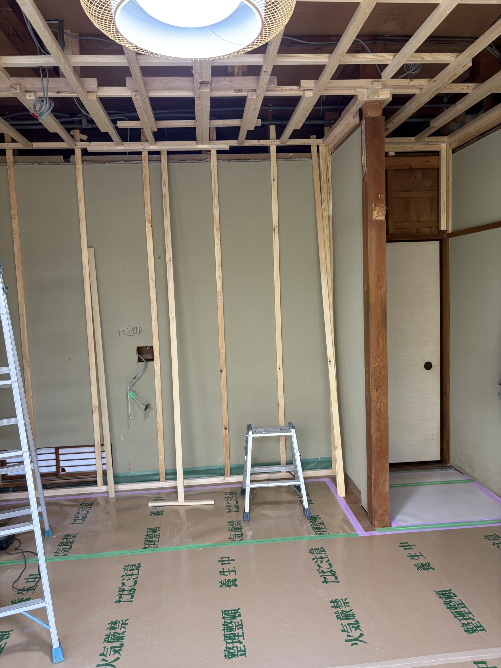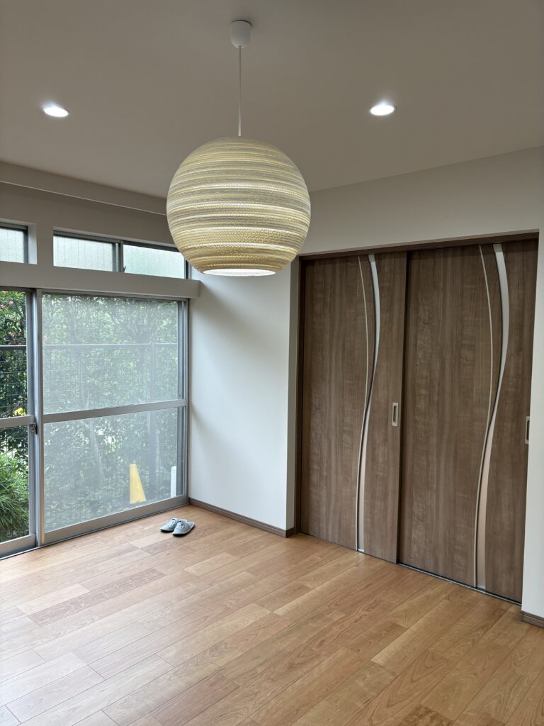 和室2部屋を洋室1部屋へ改修工事 2025年10月20日 純和室から洋室への改修工事をご依頼いただきました☺ 素敵なライトがついて、明るい室内に。 アクセントクロスを施し、とても素敵に仕上がりました。 着工前 改修工事 完成